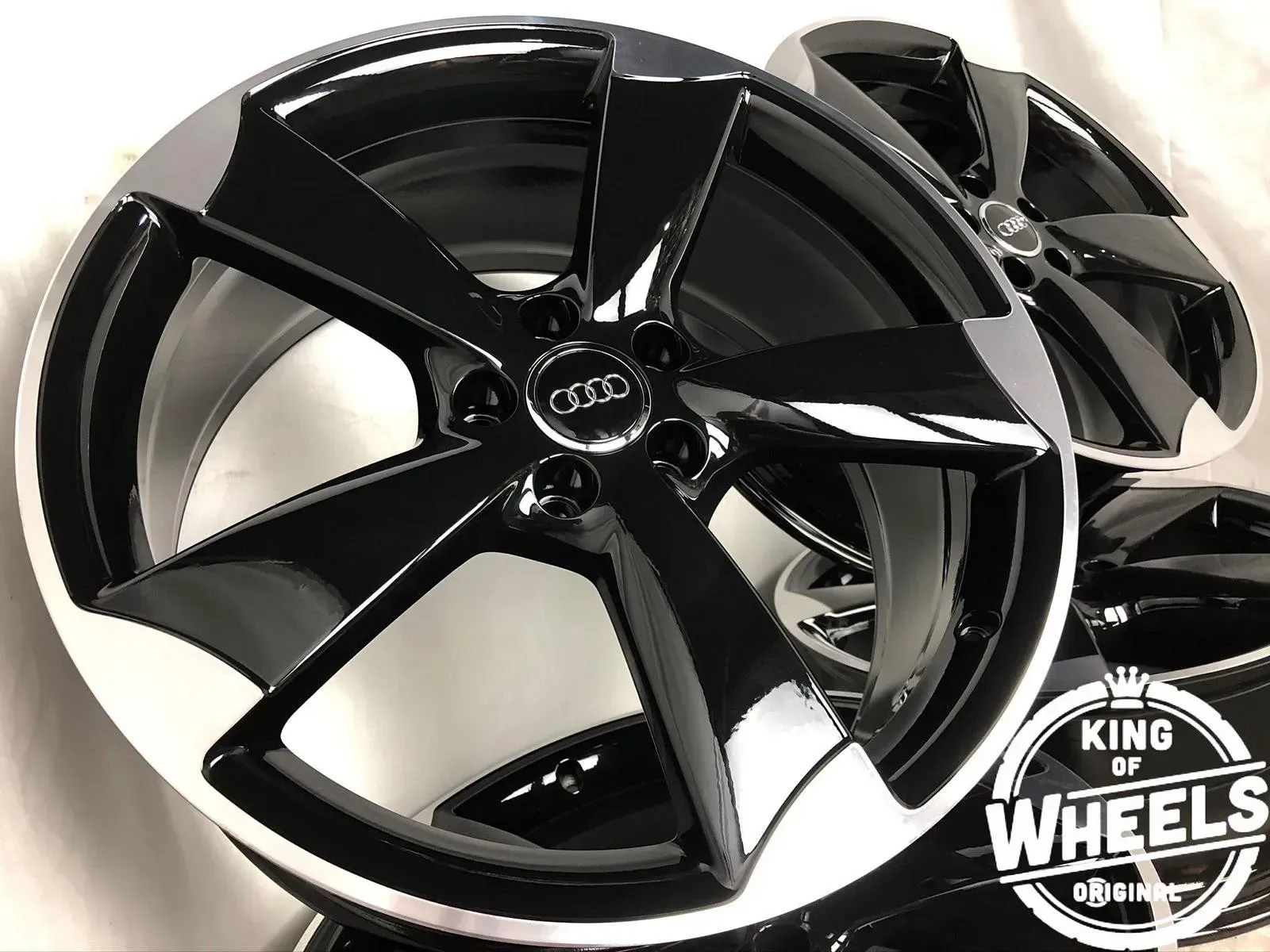 BLACK-EDITION BY KING OF WHEELS - NEUWERTIG - FELGEN FIRSCH IN SCHWARZ-HOCHGLANZ PULVERBESCHICHTET UND FRISCH CNC-GLANZGEDREHTOriginal: